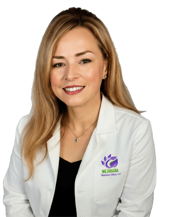 He visto de primera mano cómo se sienten los pacientes desatendidos al enfrentar problemas como la menopausia, el aumento de peso, la fatiga o la baja testosterona, especialmente cuando las barreras del seguro médico se interponen. Por eso fundé la Clínica de Bienestar Mejorana. Inspirada en la mejorana, hierba conocida por sus propiedades calmantes y curativas, Mejorana representa mi convicción de que el bienestar debe ser delicado, personalizado y arraigado en la naturaleza.
